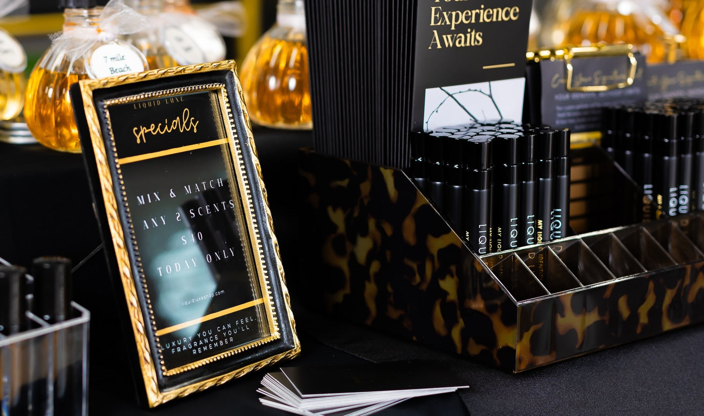 - Complete perfume bar setup - Signature fragrances, blending tools & displays